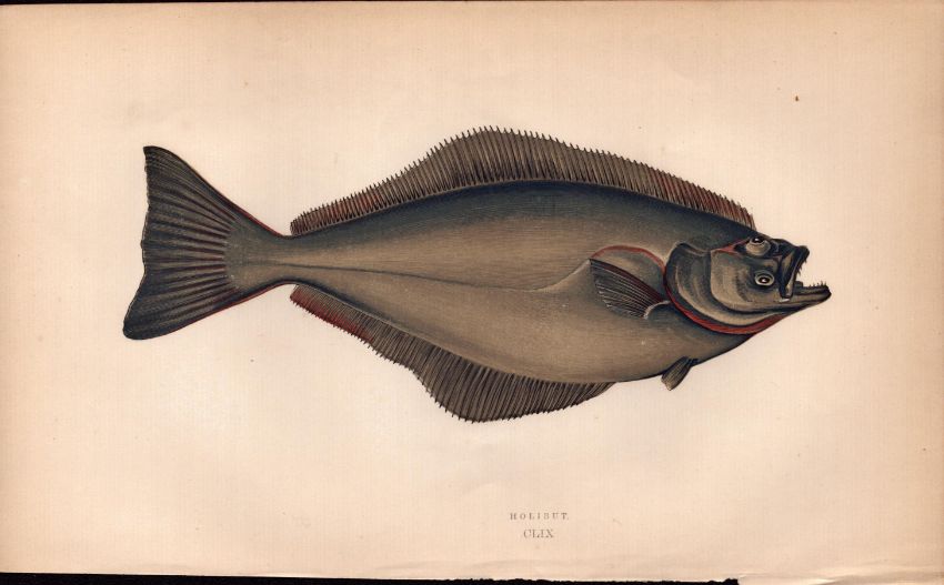 Halibut Antique Johnathan Couch Coloured Fish Engraving.