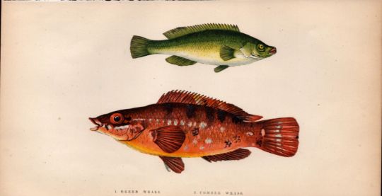 Green & Comber Wrass 1868 Antique Johnathan Couch Coloured Engraving.