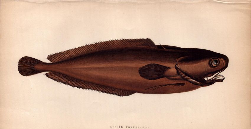 Lesser Forkbeard 1868 Antique Johnathan Couch Coloured Engraving.