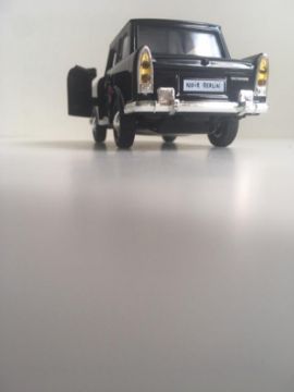 This work is a 1:39 scale model of Noir's full-size, hand-painted Trabant car in Colours.
