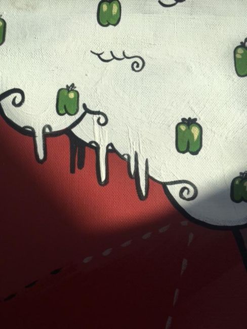 A unique one off, oil and acrylic hand Signed Gallery piece and features the artists USPs, love peace and the environment.