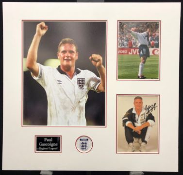 A mounted presentation bearing the original signature of Paul Gascoigne which he has signed as ""Gazza""