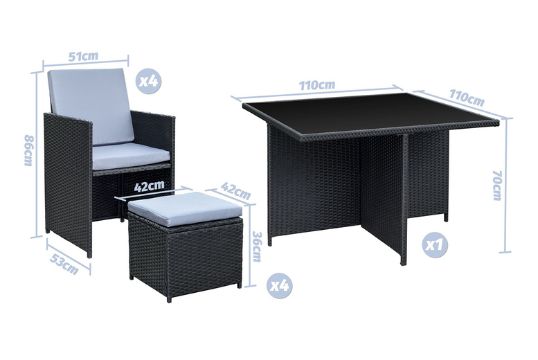 Table: L 110cm x W 110cm x H 70cm