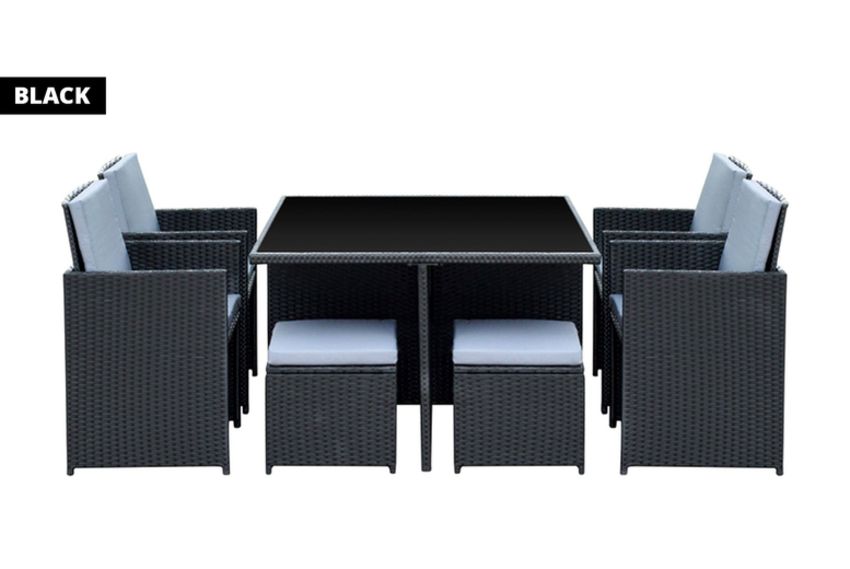 The handy dining table also has full table leg weaving for a luxurious feel.