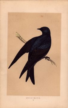 Title: Purple Martin Rev Morris Antique History of British Birds Engraving.
