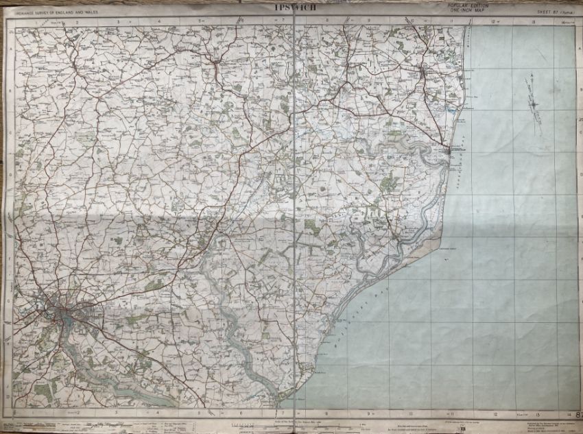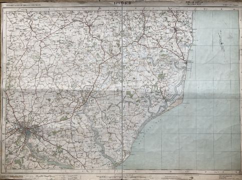 Ipswich East Anglia Cloth Backed Antique 1919 Engineering Working Map.