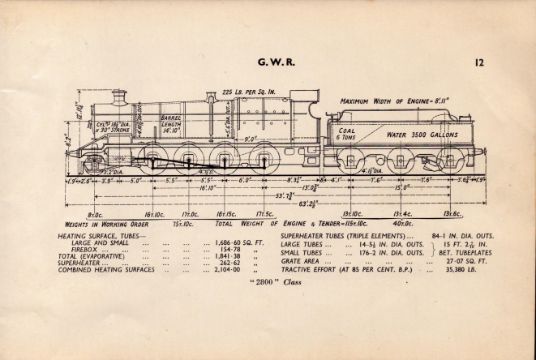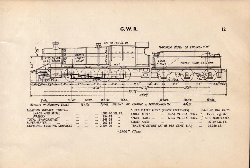 Title: G.W.R “2800” Class Locomotive Detailed Diagram 85-Year-Old Prin