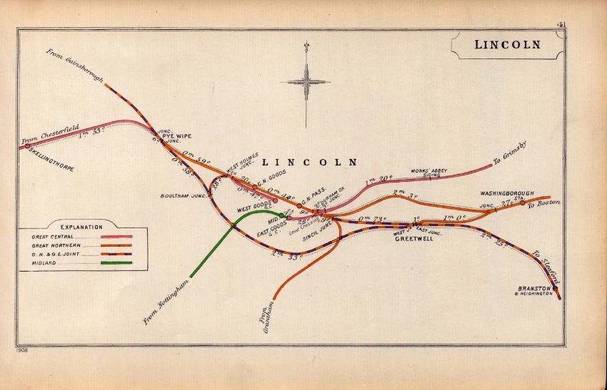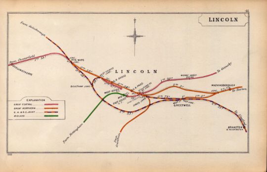 Lincoln Greetwell Washingborough  Antique Railway Junction Map-41.