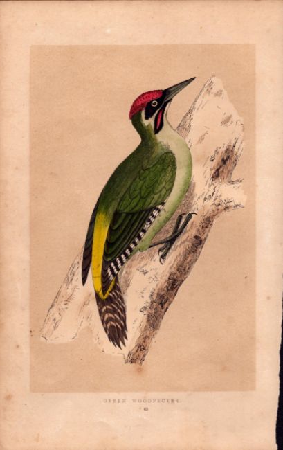 Green Woodpecker Rev Morris Antique History of British Birds Engraving.