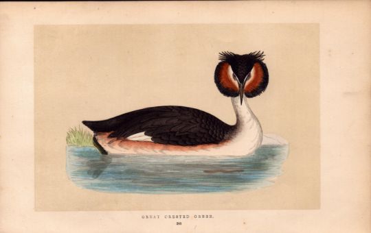 Title: Great Crested Grebe Rev Morris Antique History of British Birds Engraving.