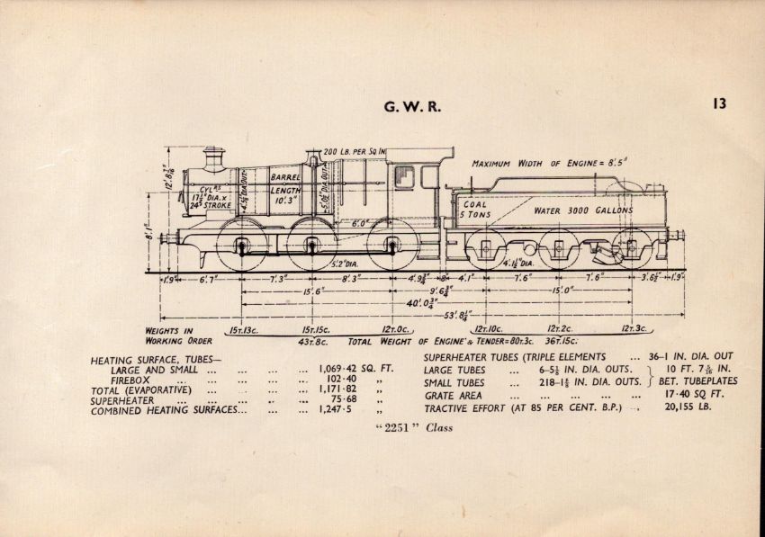 G.W.R  “2251” Class Locomotive Detailed Diagram 85-Year-Old Print-2