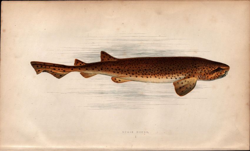 Title: Nurse Hound Shark 1869 Antique Johnathan Couch Coloured Engraving.