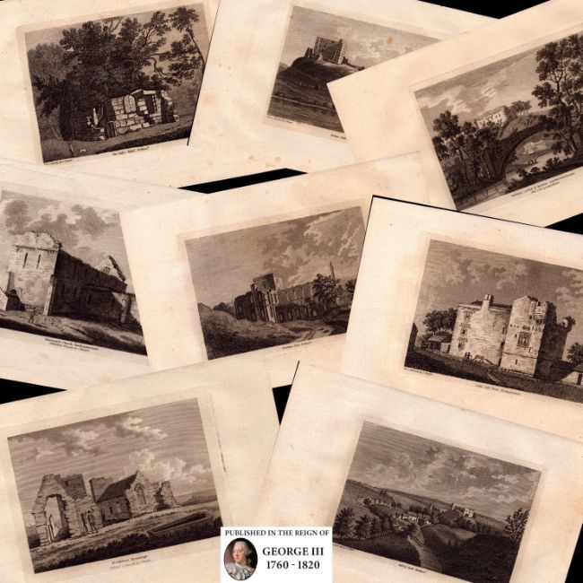 This Collection of 8 Antique Book Plates Was Removed from an 8 Volume Edition Francis Grose's. Antiquities of England and Wales Published From 1783 To (Circa) 1787.
