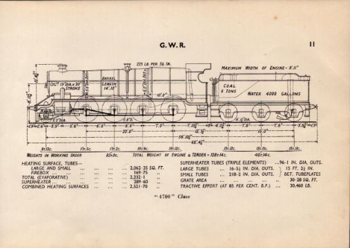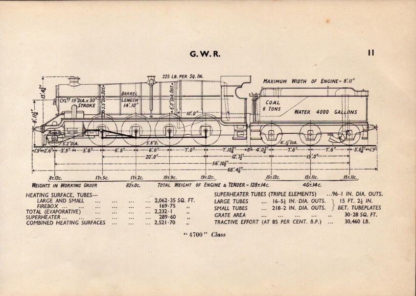 G.W.R  “4700” Class Locomotive Detailed Diagram 85 Year- Old Print.