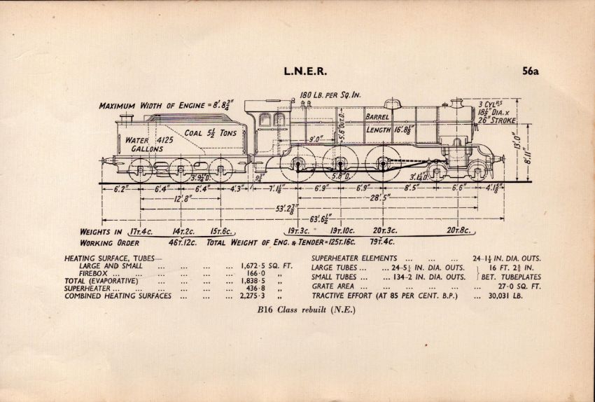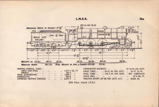 L.N.E.R. “B16 Class Rebuilt” Locomotive  Detailed Drawing Diagram 85-Year-Old Print.