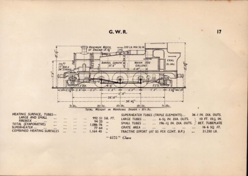 G.W.R  “4575” Class Locomotive Detailed Diagram 85 Year- Old Print.