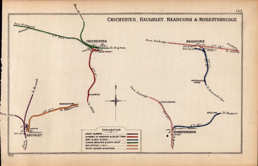 Chichester, Haughley, Robertsbridge Antique Railway Diagram-152.