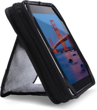 Hidden Velcro® kickstand provides superior support and multiple viewing angles on any surface.