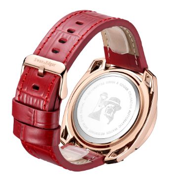 The Swan & Edgar logo engraved stainless steel caseback acts as a stamp of approval, while the garnet-red leather strap that shares the royal heritage which Edward I held in high acclaim during his time on the throne.