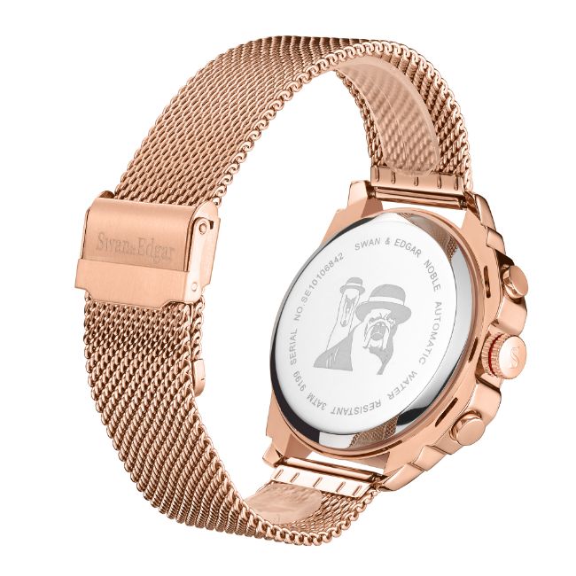 The rose gold steel bracelet shares similarities with the chainmail worn by the house soldiers and bannermen over nearly a century ago. Its armour-like rose gold IP case and Swan & Edgar logo-engraved stainless steel caseback finalise the piece, hinting at yet more heritage to be found in chapters across generations.