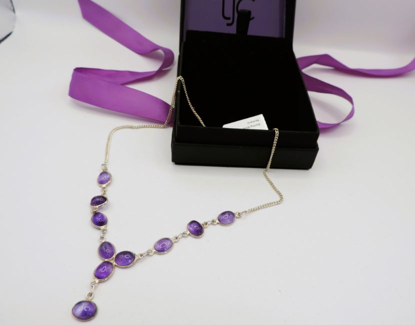 Title: Sterling Silver Cabochon 30CT Amethyst Necklace New With Gift Box
