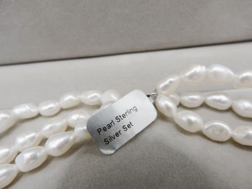 18 inch necklace silver clasp, expandable bracelet and silver 45mm drop earrings.