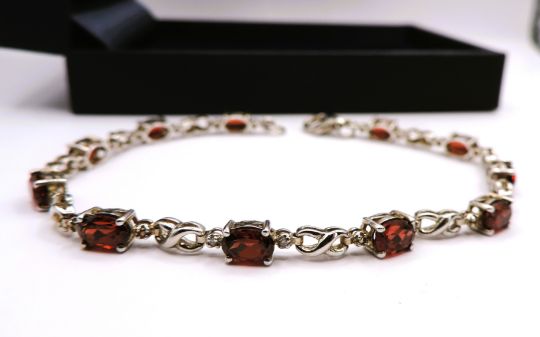 A beautiful sterling silver bracelet set with 11 x 5x3mm Red Topaz gemstones (2.75 tcw) &  22 x 1mm White Topaz gemstones (0.22 tcw)