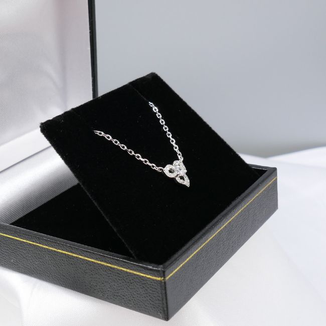 Title: Fancy Celtic Style Pendant and Integral Chain In Silver, With Gift Box