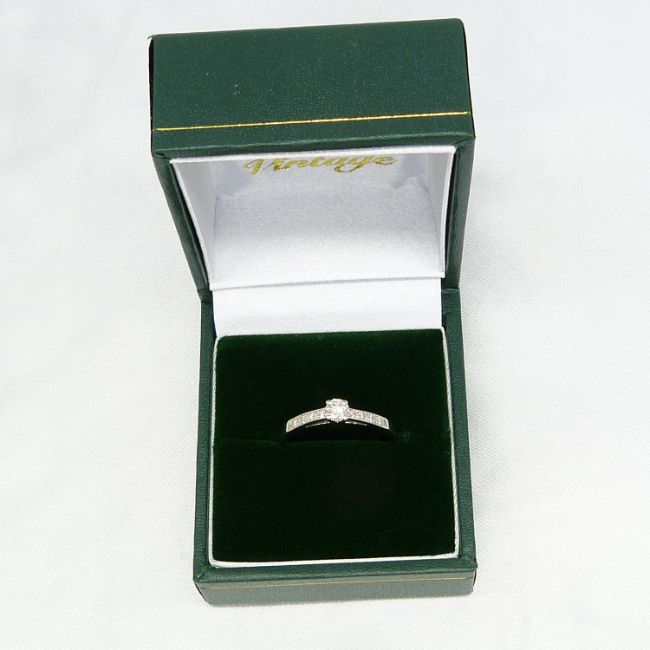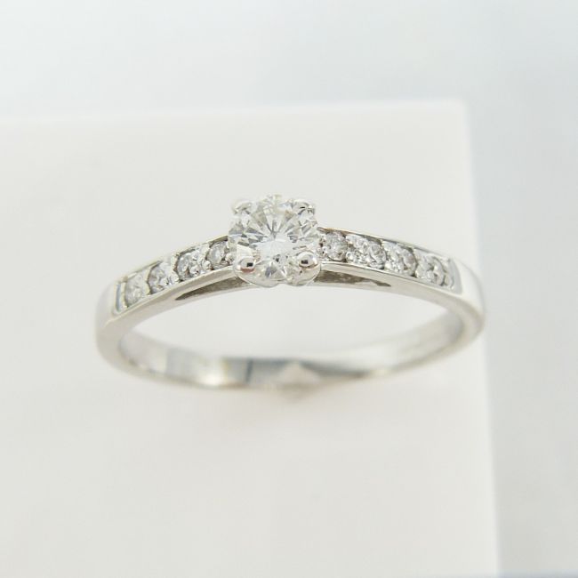 Title: 18k White Gold Diamond Solitaire-Style Ring, With Further Diamonds Set To The Shoulders