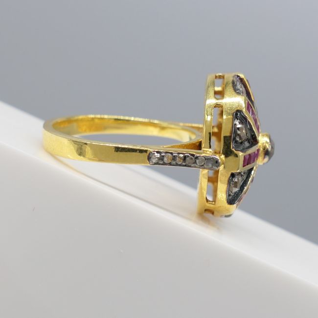 Rubies: natural; 32 x step cut; channel set to ring's head; 1.10ct total.