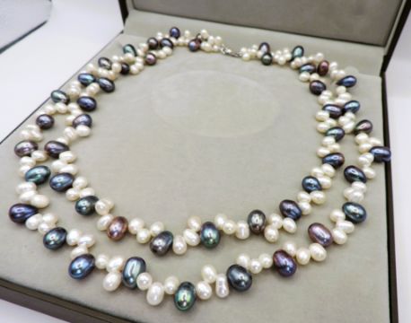 A beautiful 18 inch 2 strand Freshwater cultured pearl necklace with silver clasp.