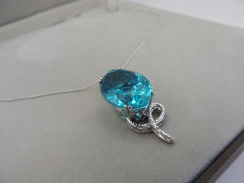 A sterling silver pendant set with a large lab created Topaz.