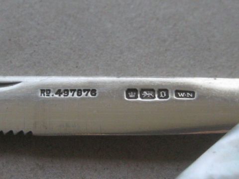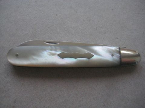 Title: Rare Edwardian Mother of Pearl Hafted Saw Bladed Silver Fruit Knife