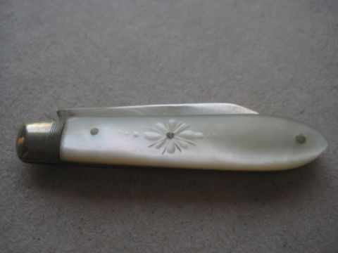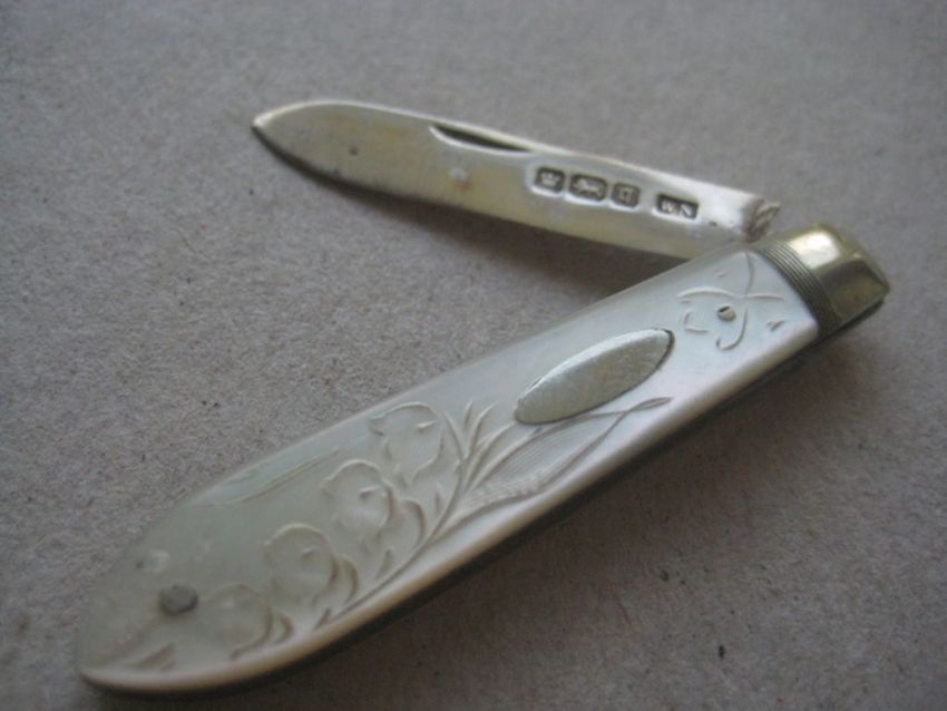 Edwardian Mother of Pearl Hafted Silver Bladed Folding Fruit Knife.  Hallmarked for Sheffield 1908.