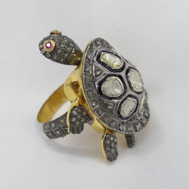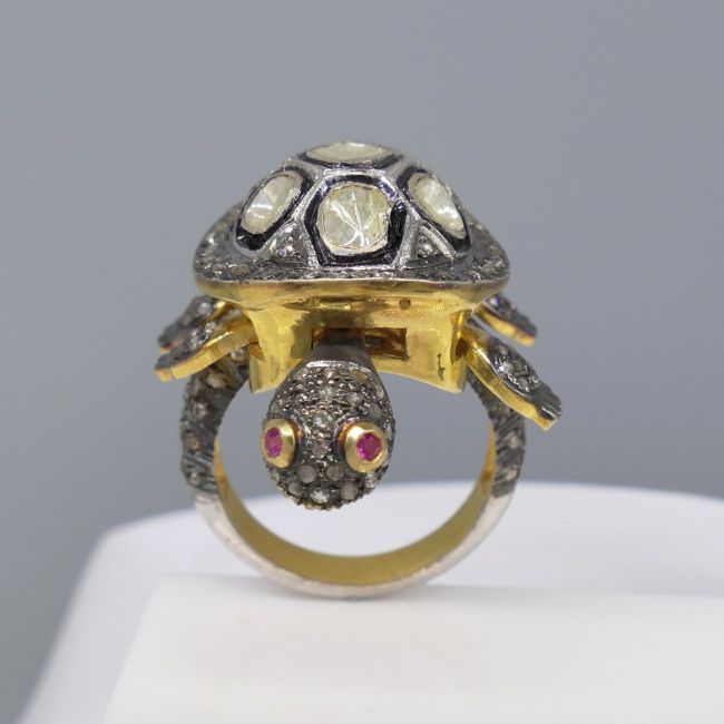 Rubies: 2 x round-cut set for the eyes; 0.04 ct total.