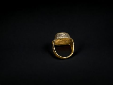 Ottoman White Metal Ring With Black Stone Insert, Size S (19.22mm)