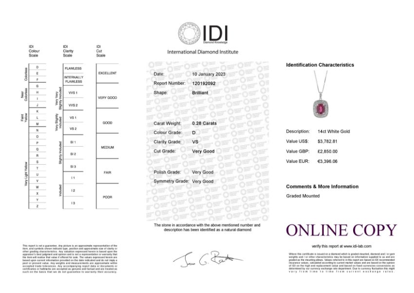 The lot is provided with the original certificate report and beautiful gift box.