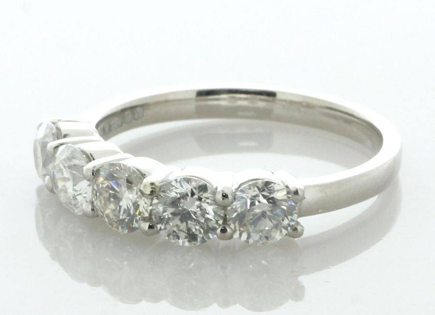 Five round brilliant cut diamonds are set in this stunning platinum semi-eternity diamond ring.
