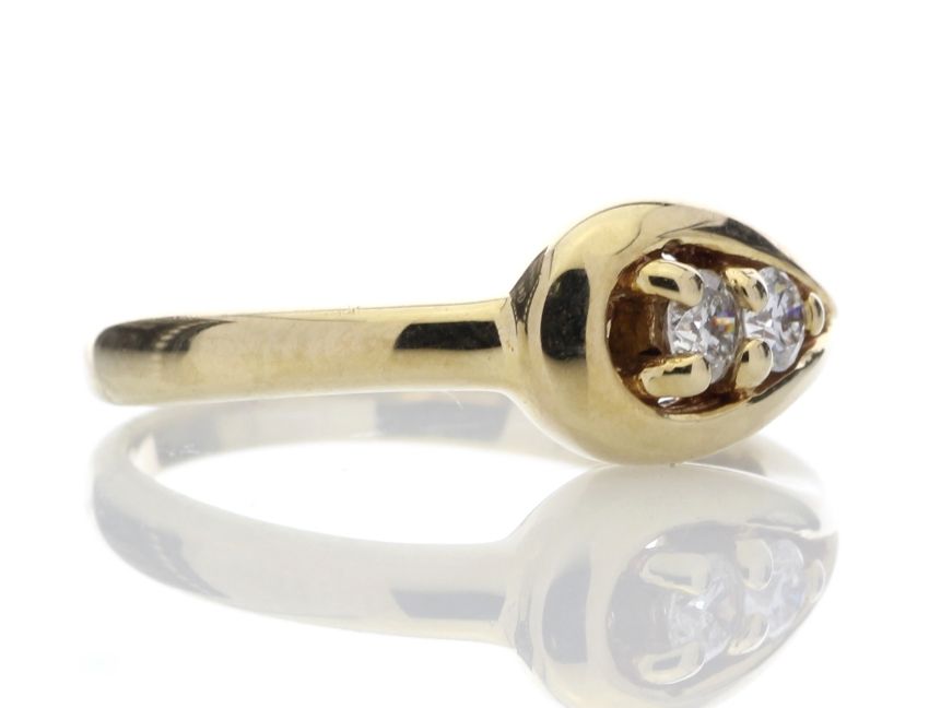 Two natural round brilliant cut diamonds are set in this unique 9ct yellow gold ring.
