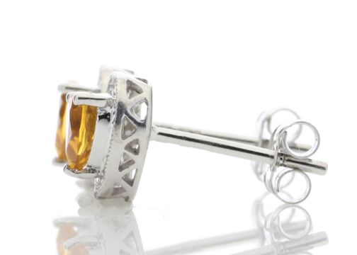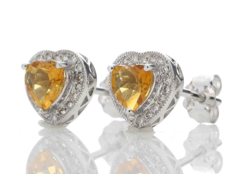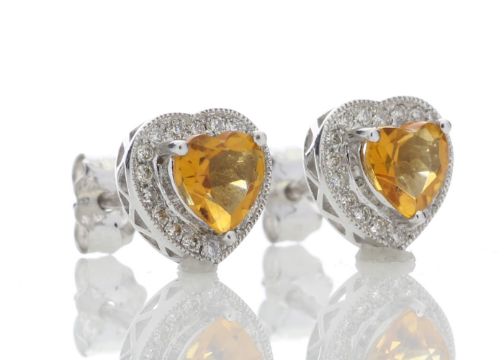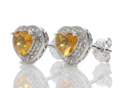 Title: 9ct White Gold Citrine Heart Diamond Earring (C1.40) 0.20 Carats