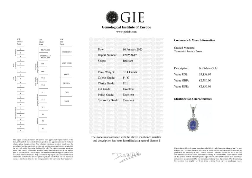 Title: 9ct White Gold Diamond and Tanzanite Pendant (T0.84) 0.14 Carats