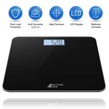 ULTRA-ACCURATE MEASUREMENTS: This Active Era Bathroom Scale for Body Weight offers kg/ st / lb weight measurements with high precision results to the nearest 0.1 kg / 0.01 st / 0.22 lb. These digital scales feature 4 high-precision sensors and a toughened ultra-slim glass base capable of weighing up to 180 kg / 28 st / 396 lb.