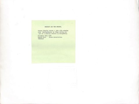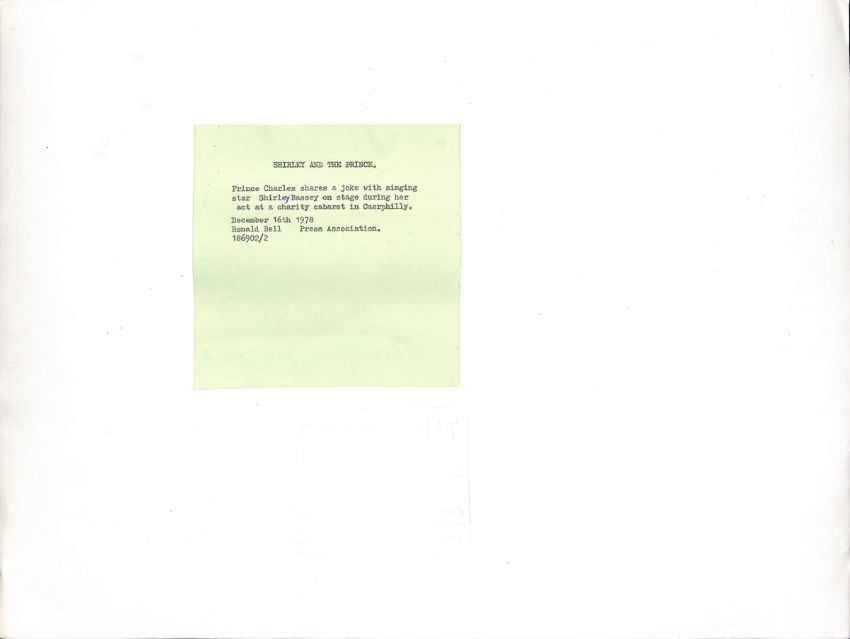 Prince Charles shares a joke with singing star Shirley Bassey on stage during her act at a charity cabaret in Caerphilly, December 1978.  Original Press Photograph   40cmx30cm