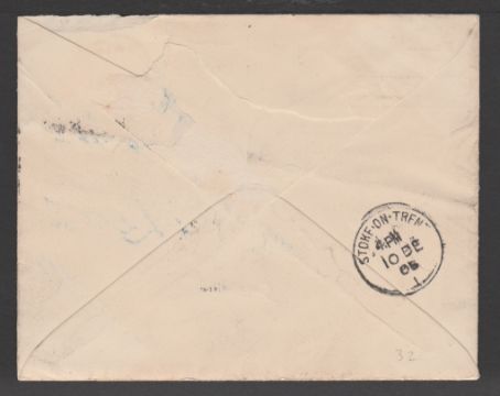 Cover from Langwith Junction to Stoke on Trent franked by King Edward VII 1d cancelled at Sheffield and the unusual type Lancashire, Derbyshire & East Coast Railway 2d letter stamp tied by the handstamp "CONVEYED IN MIDLAND T(RAIN)/OVER L.D. & E.C. L(INE)".