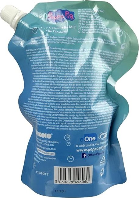 Peppa Pig bubble bath/shower gel pouch 400ml - ​​Clear in colour featuring a sweet fruity scent with resealable screw top to avoid mess and allow for easy storage. Qty (pcs/pallet) - 1,080 - RRP (Per item) - 4.99 - Total RRP. - £5,389.20