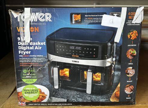 Title: Tower Vizion 9L Dual Basket Air Fryer. RRP £120 - Grade U
