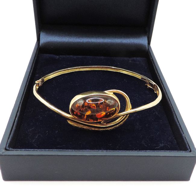 Title: Artisan 14k Gold Baltic Amber Bangle Gdansk Poland c.1996