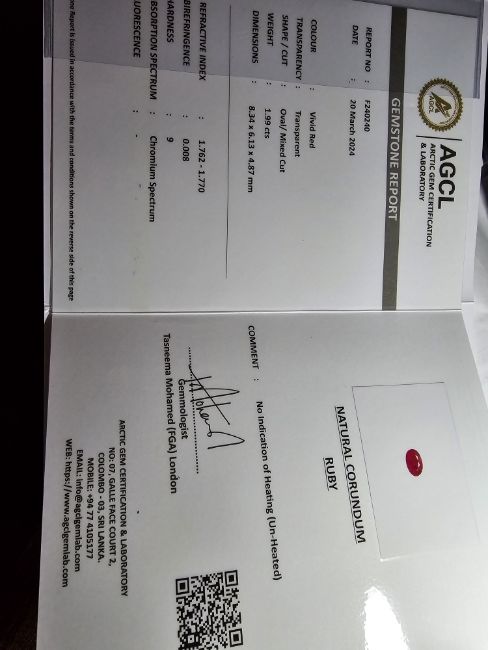 Beautiful 1.99 carat Ruby from the Azad region of Kashmir, a rare and sought-after gem.