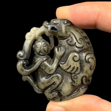 Title: Antique Hand Carved Jade Statue Pendant. Ancient Jade,