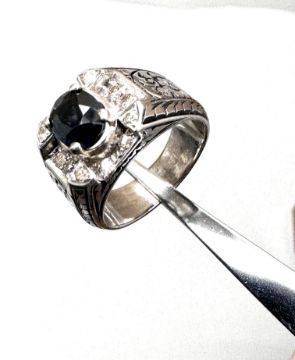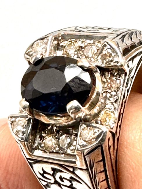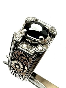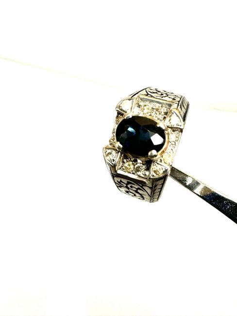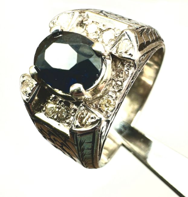 The combination of the bold sapphire and shimmering diamonds makes this an elegant yet masculine statement accessory, suitable for both special occasions and everyday wear.